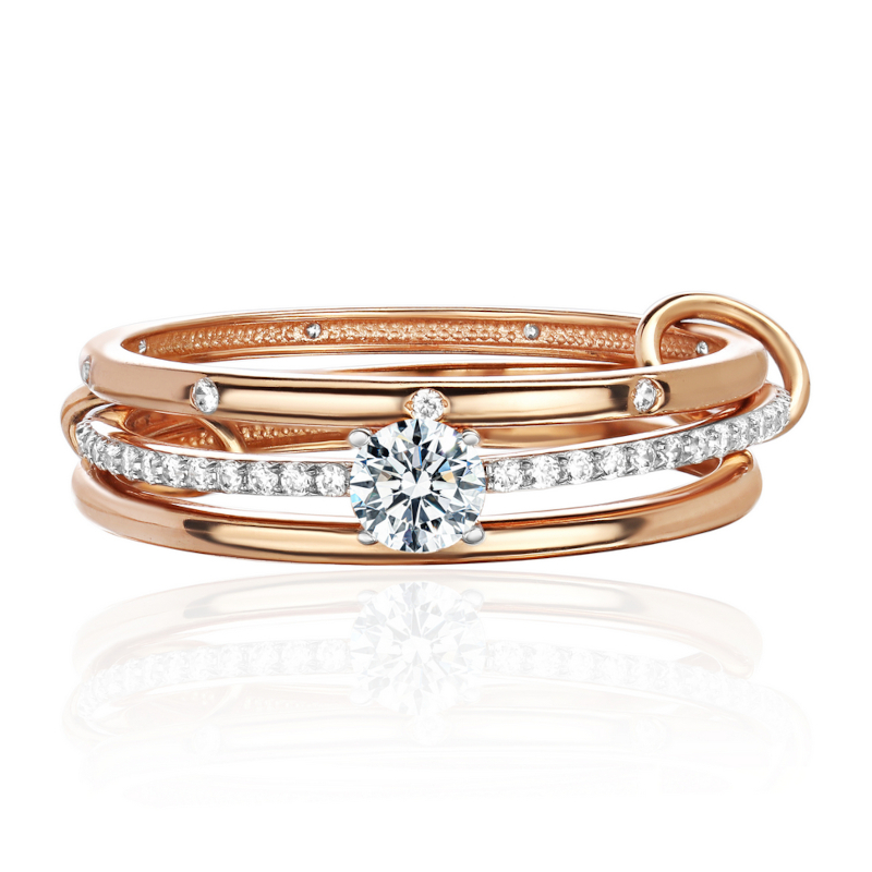Кольцо из красного золота 585 пробы с фианитами – сияние в каждой грани. Это не просто кольцо, это целая история, рассказанная на языке драгоценных металлов и сверкающих камней. Кольцо 01К1115493Р – это изысканное сочетание трех отдельных колец, каждое из которых дополняет и подчеркивает красоту другого.