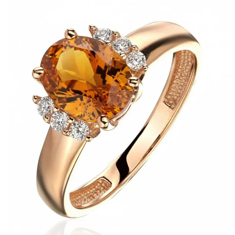 Кольцо из красного золота 585 пробы с цитрином и фианитами 01К3116570-2