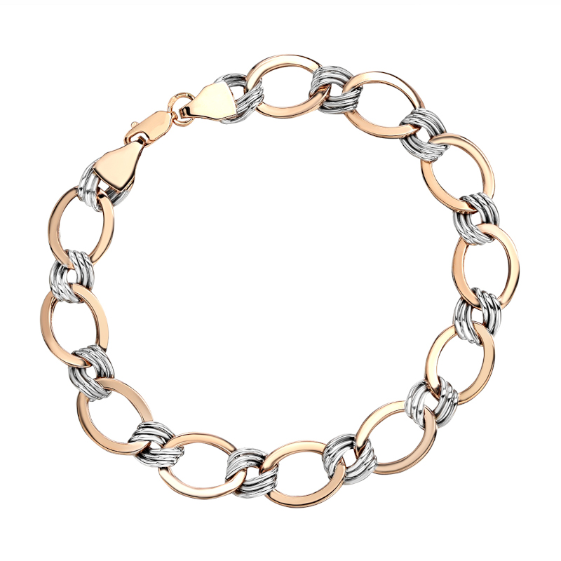 Браслет из комбинированного золота 585 пробы без вставок 01Б063129