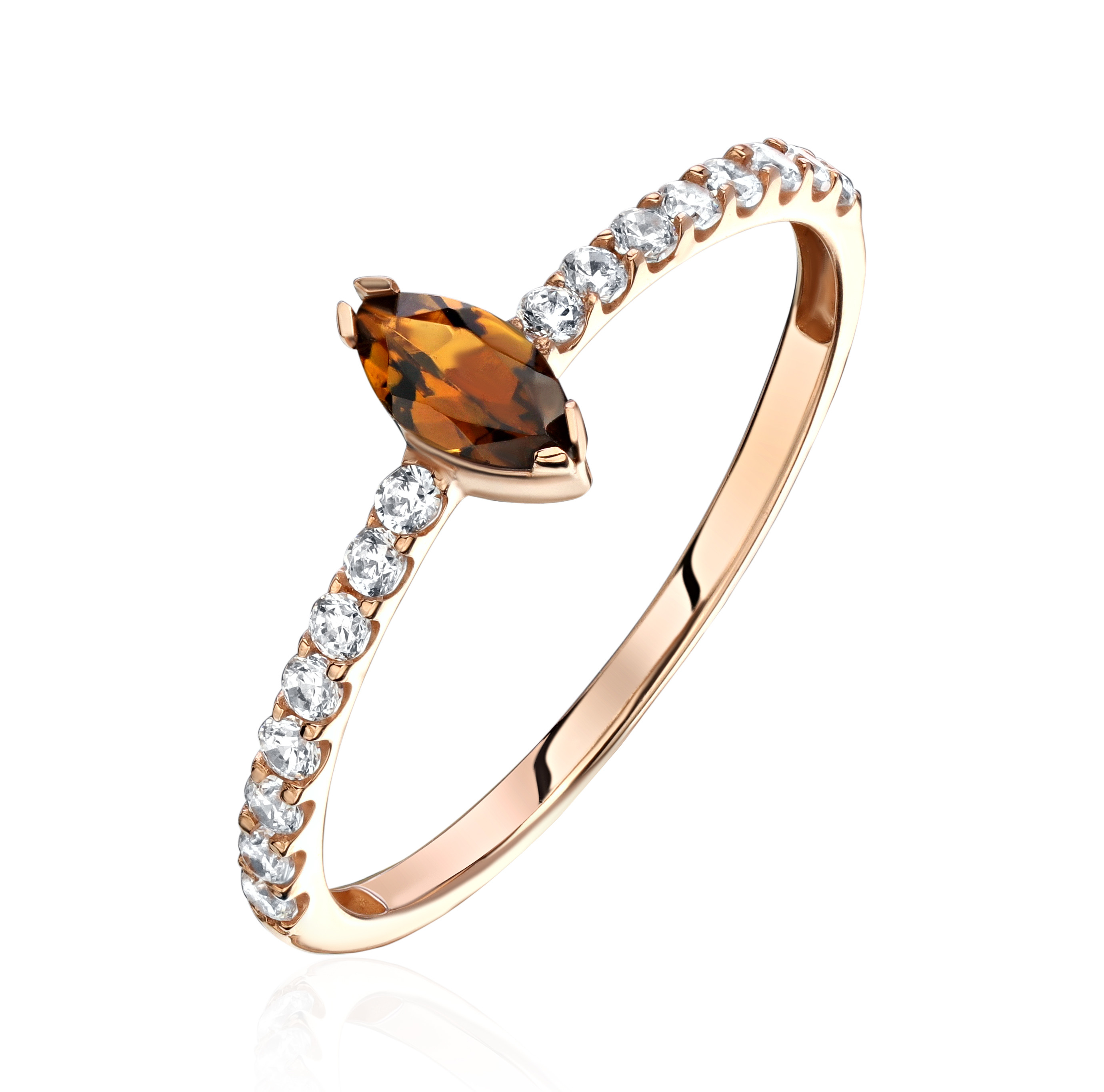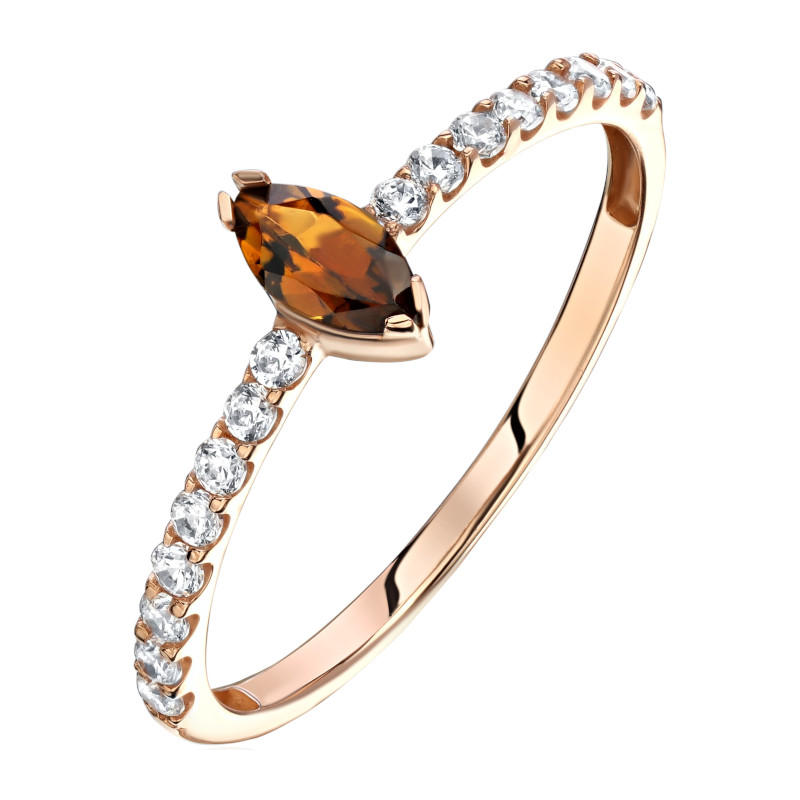 Кольцо из красного золота 585 пробы с турмалином и фианитами 01К3115061-4