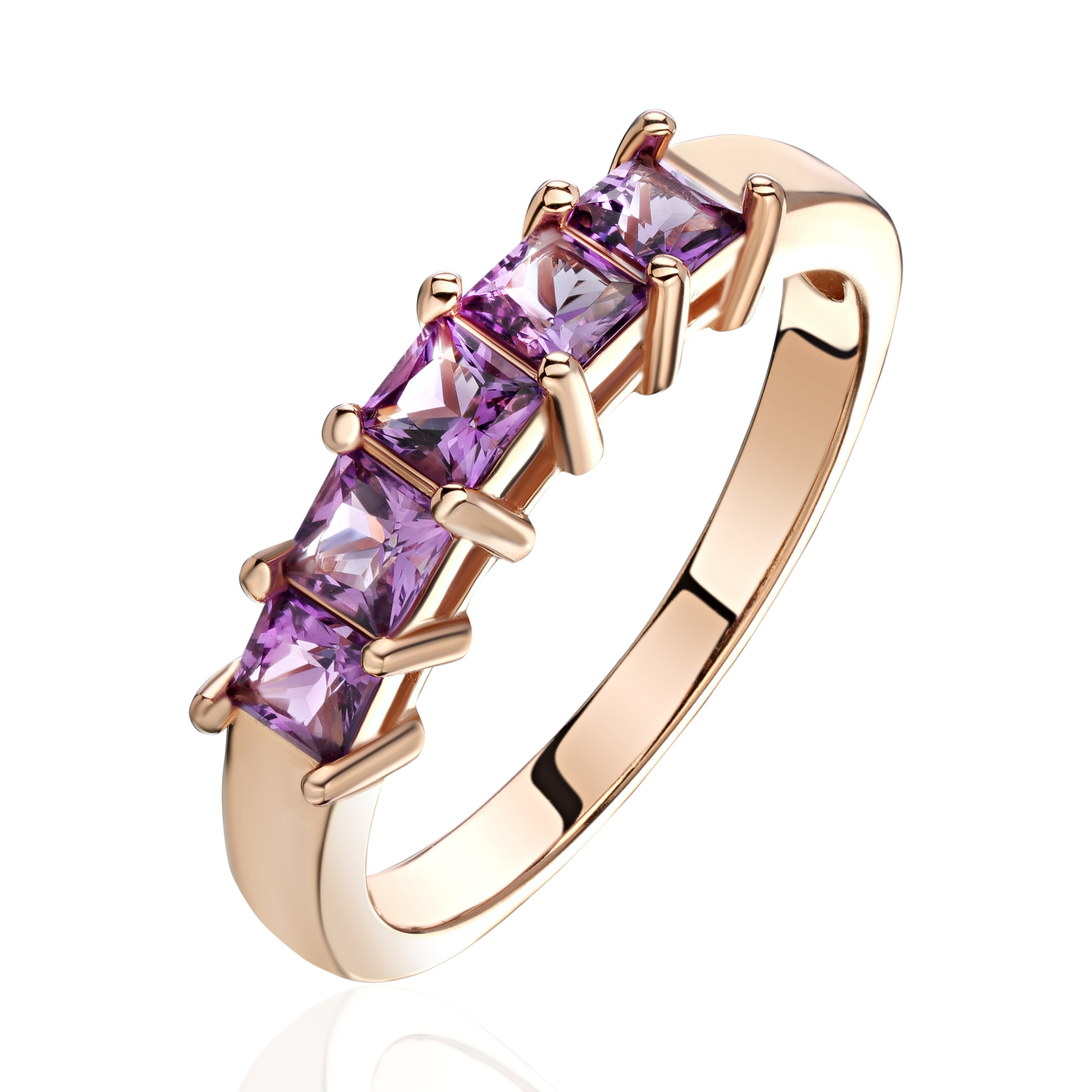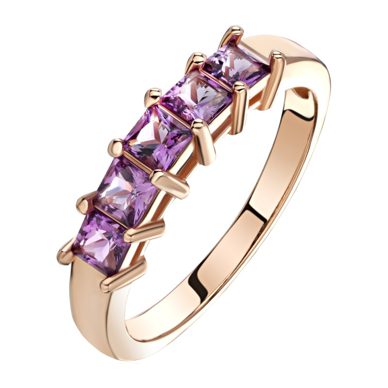 Кольцо из красного золота 585 пробы с аметистами 01К3115069-5