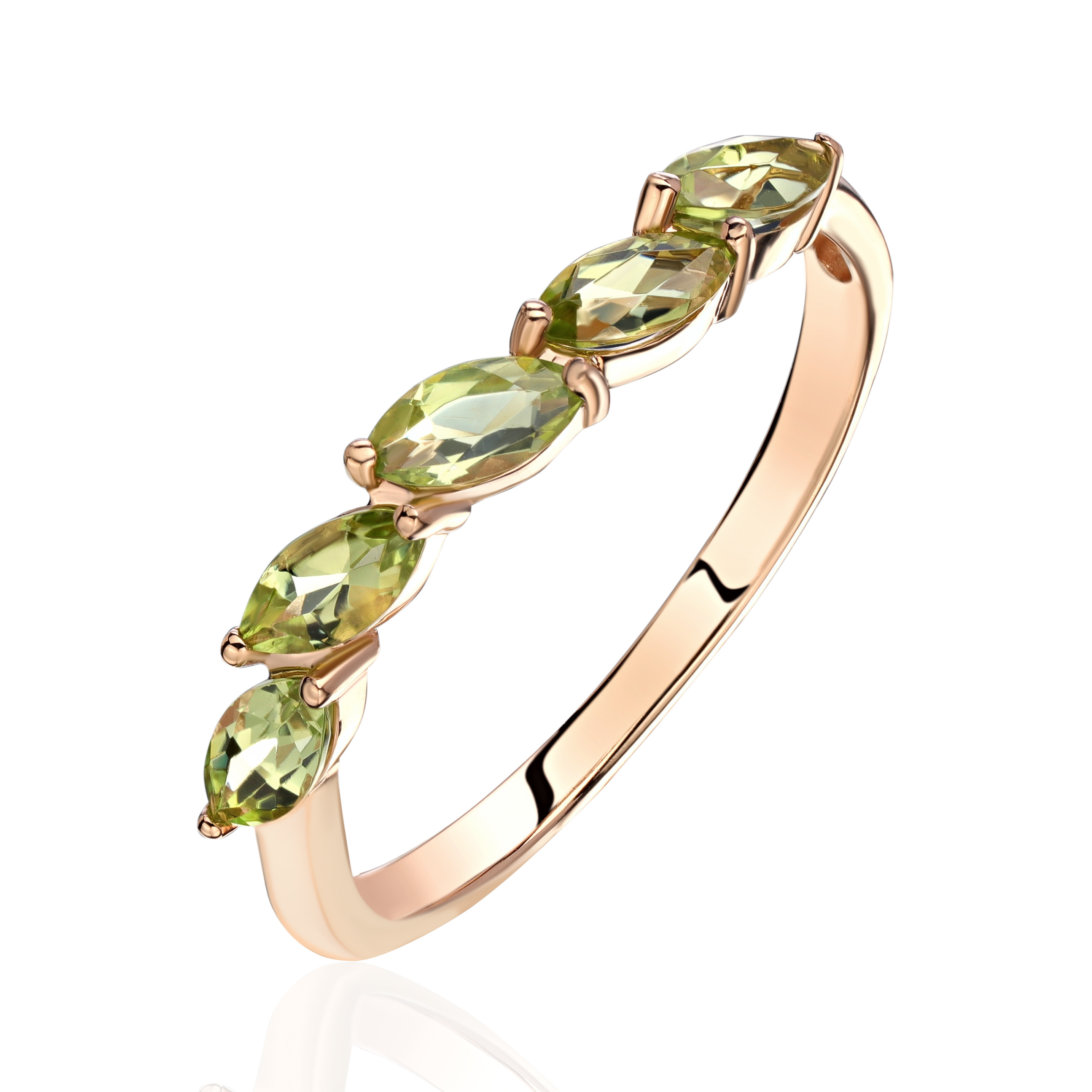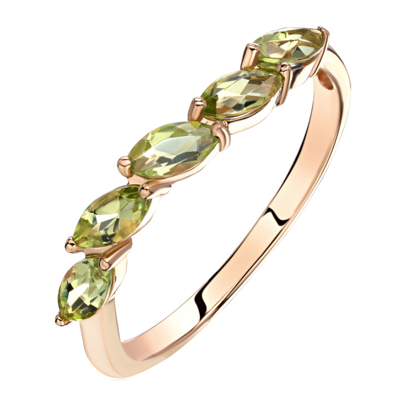 Кольцо из красного золота 585 пробы с хризолитами 01К3115178-2