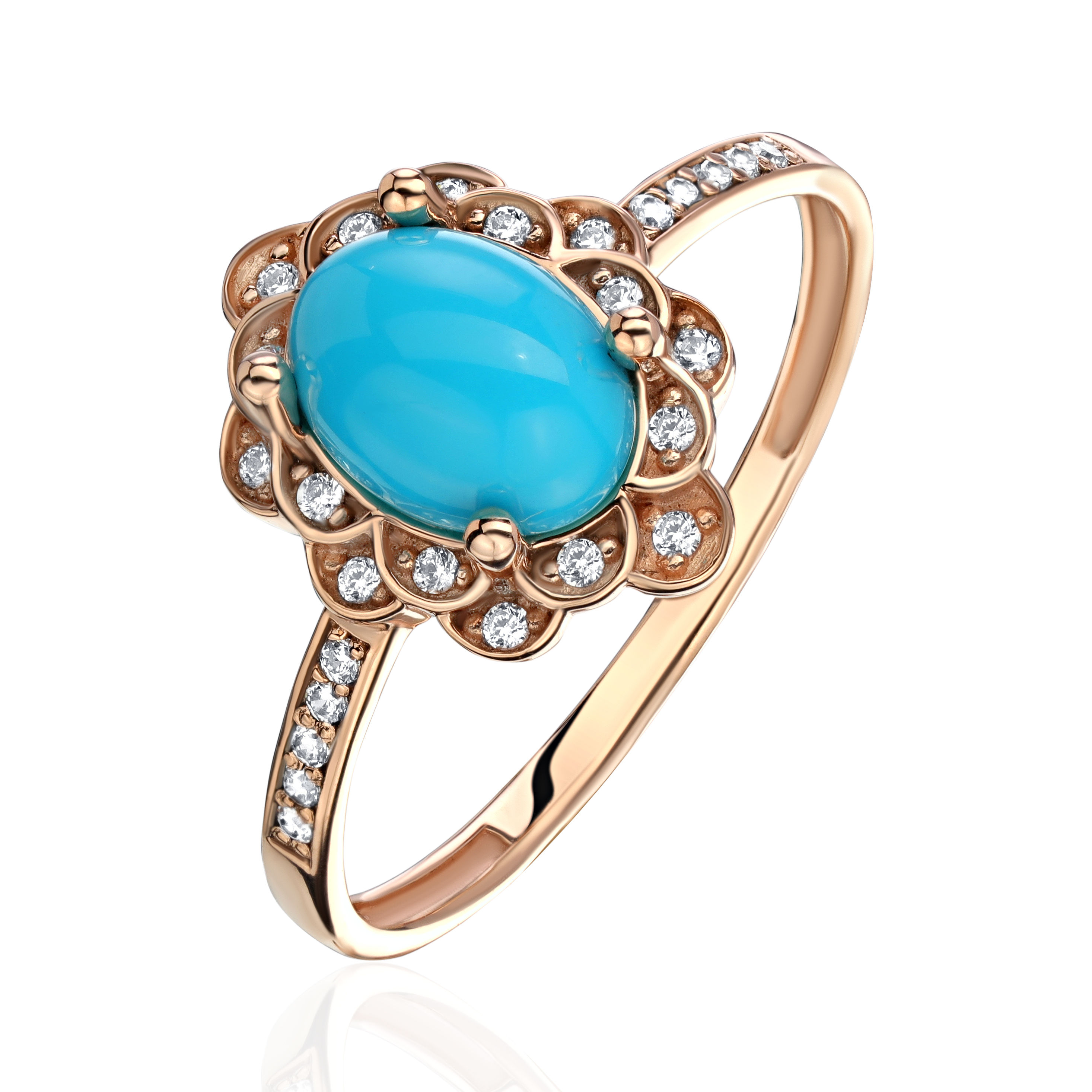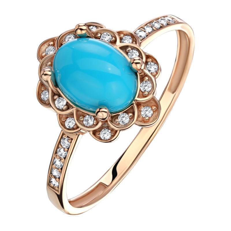 Кольцо из красного золота 585 пробы с фианитами и бирюзой 01К4112073-1