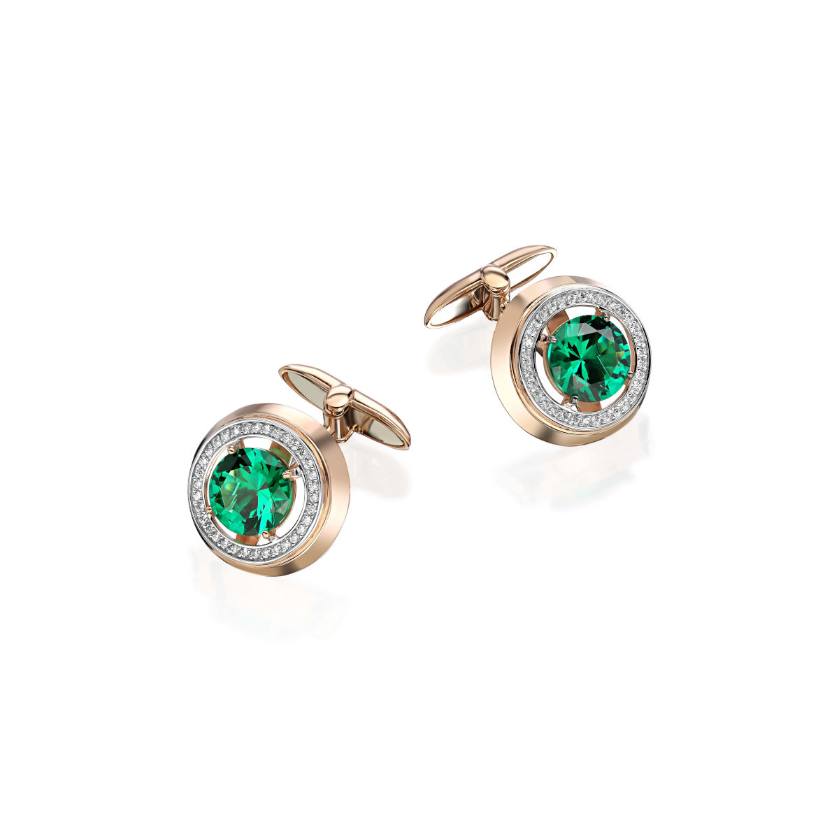 Запонки из красного золота 585 пробы с фианитами и наноизумрудами 01Н210396Р-1