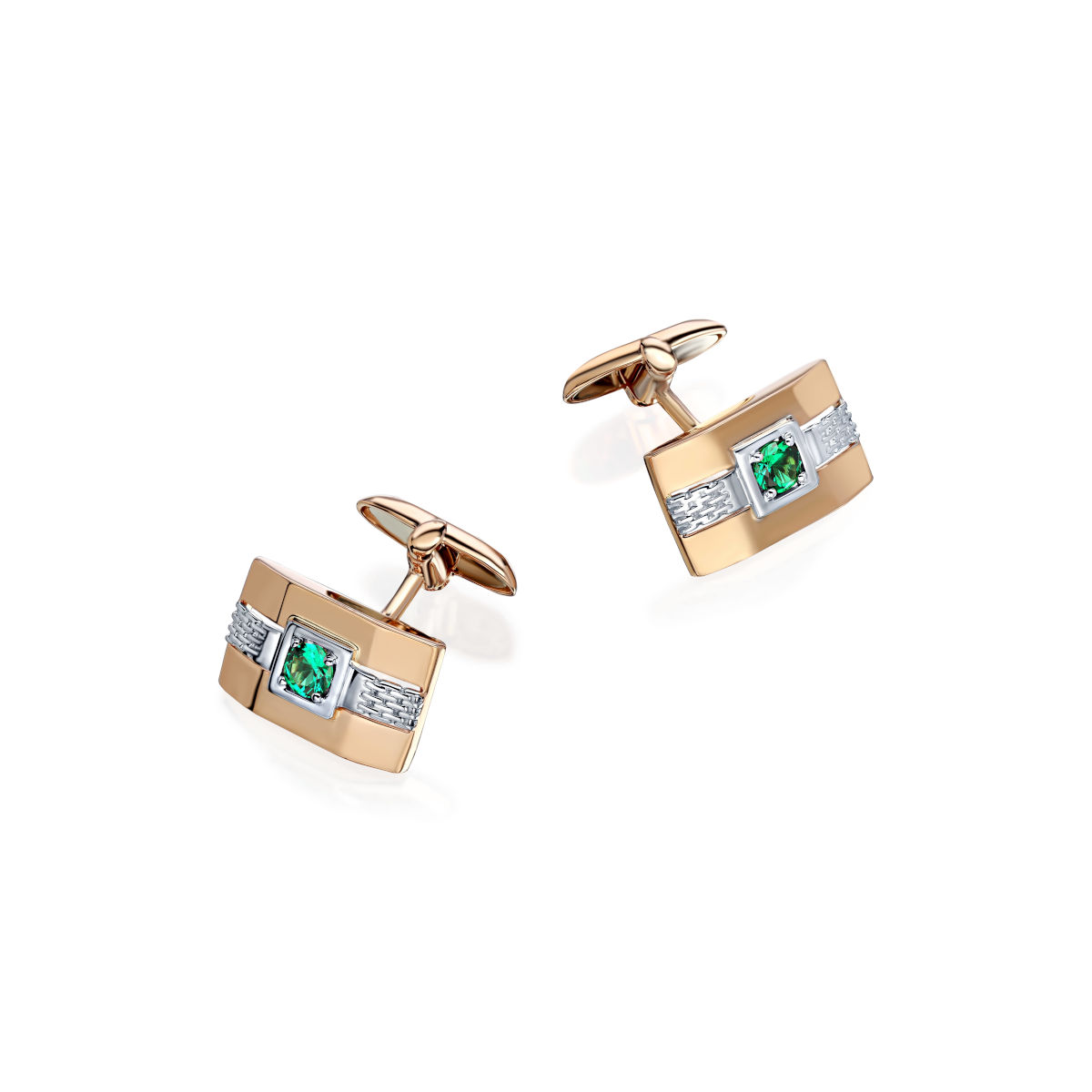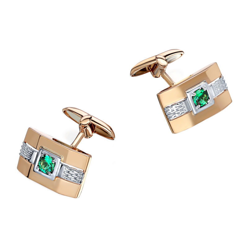 Запонки из красного золота 585 пробы с наноизумрудами 01Н210401Р-1