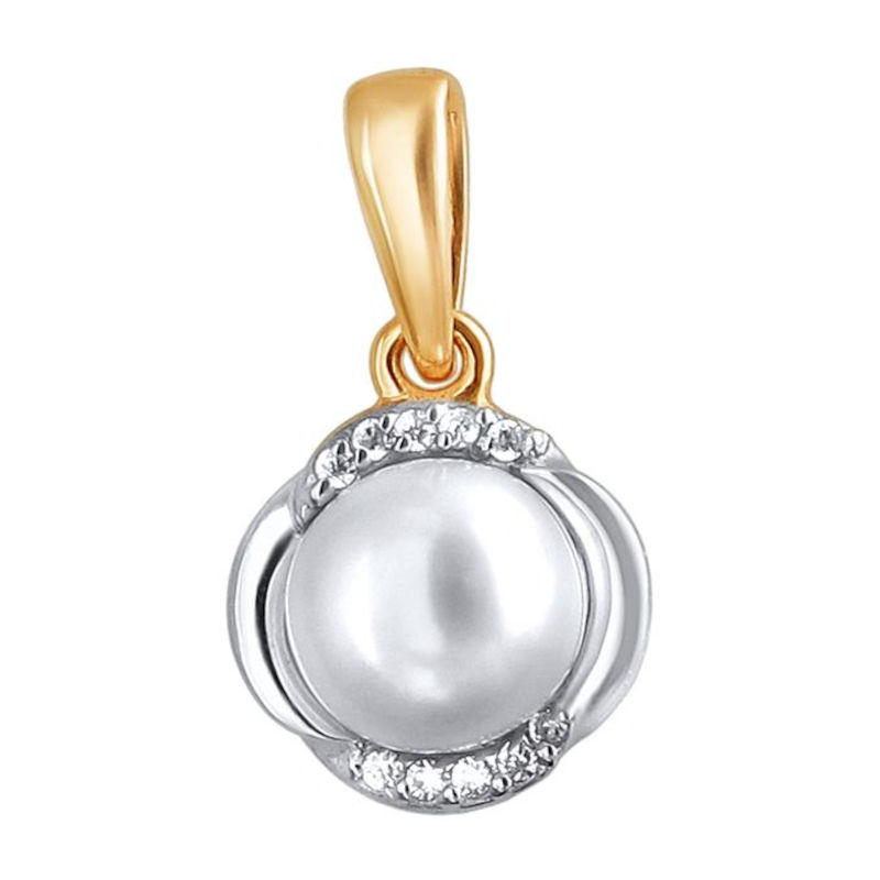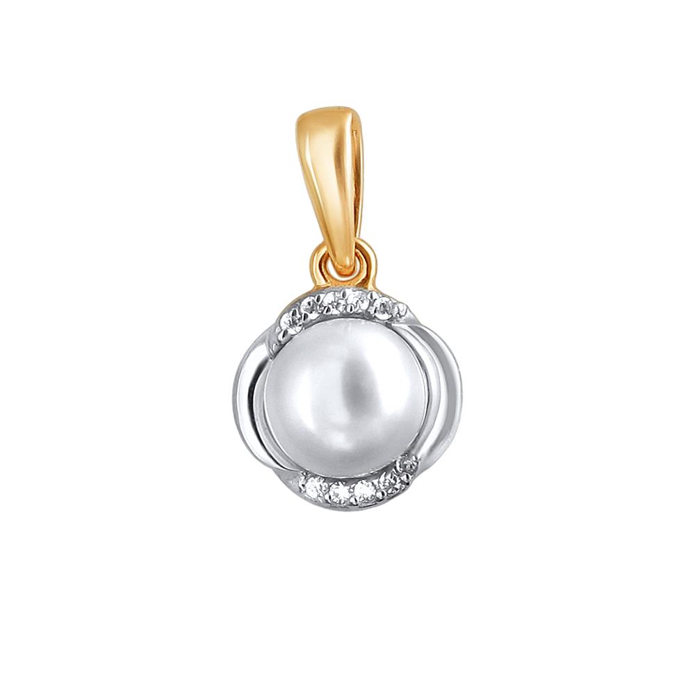 Подвеска из красного золота 585 пробы с жемчугом и фианитами 01П3111858Р-1