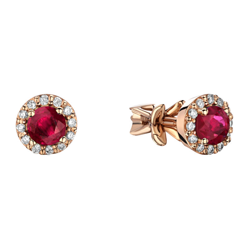 Серьги из красного золота 585 пробы с рубинами и бриллиантами 01С616868-2