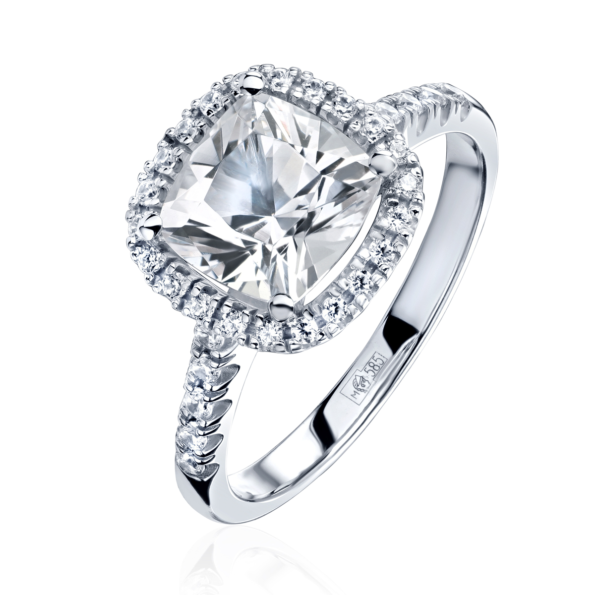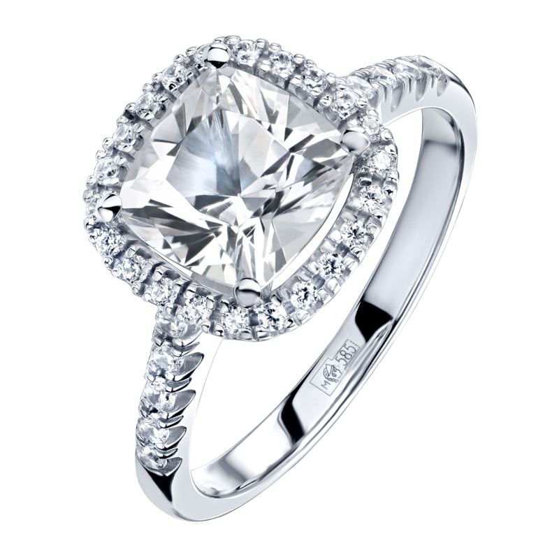 Кольцо из белого золота 585 пробы с топазом и фианитами 01К327639-1