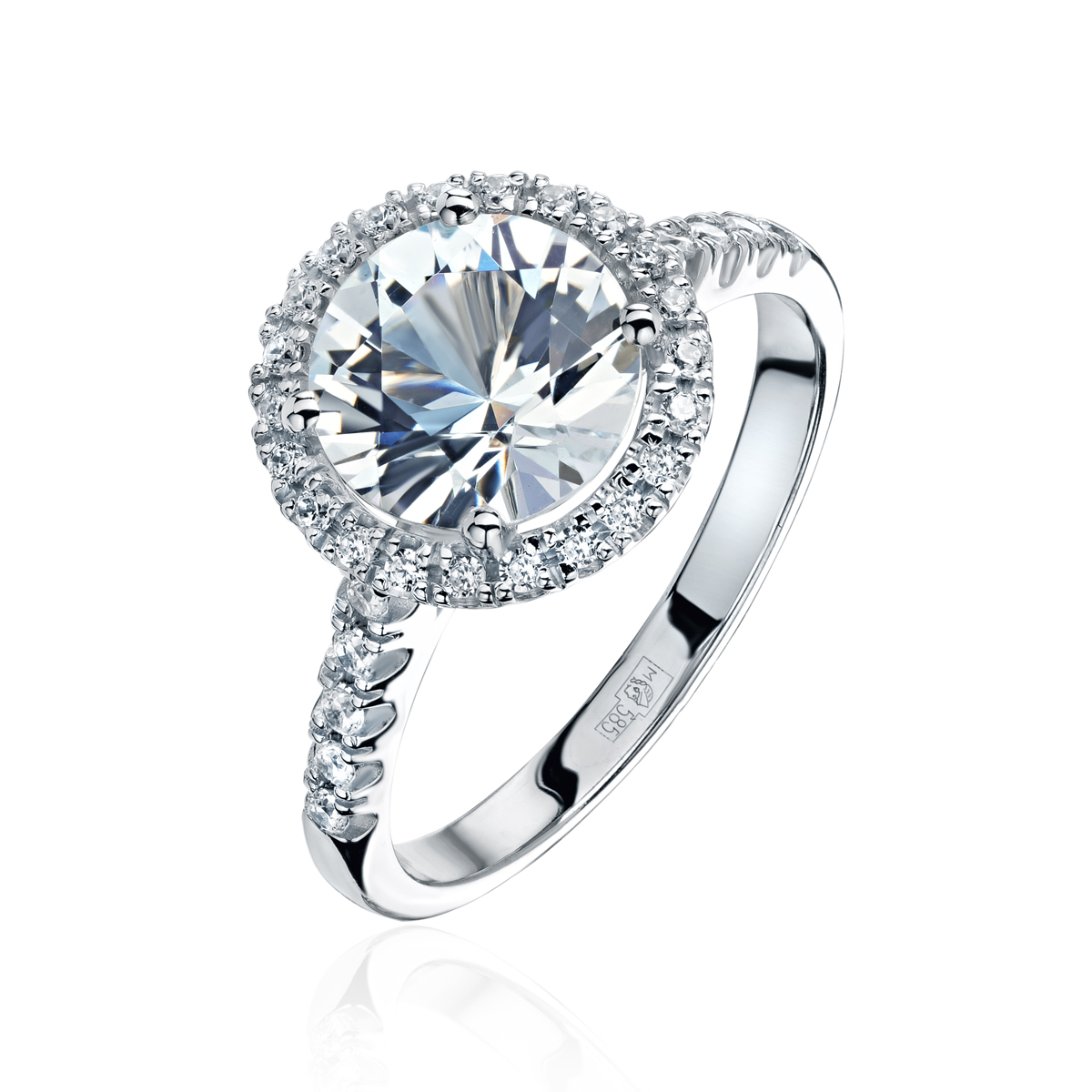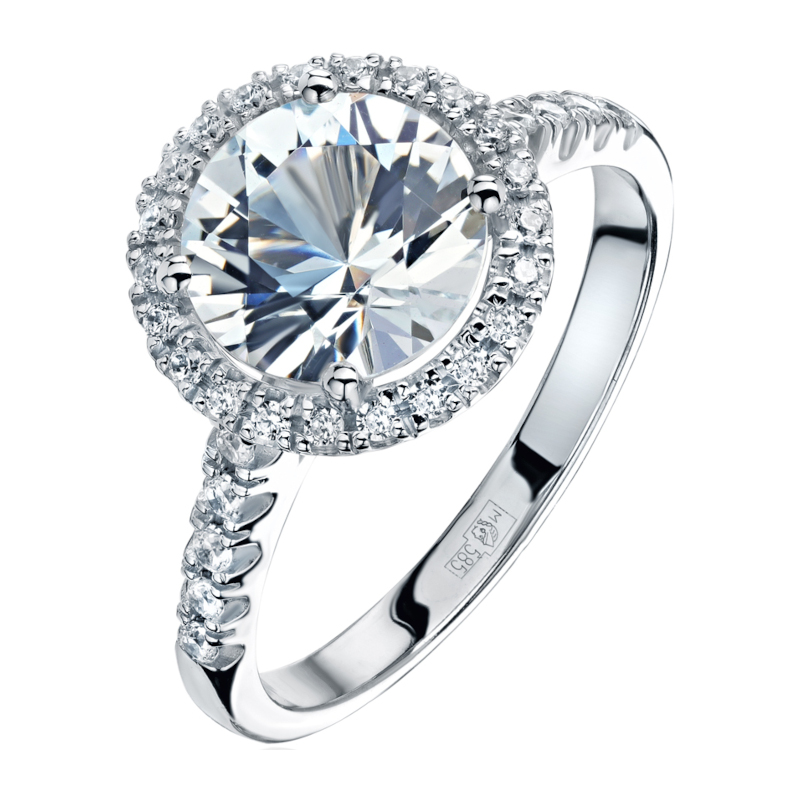Кольцо из белого золота 585 пробы с топазом и фианитами 01К327657-2