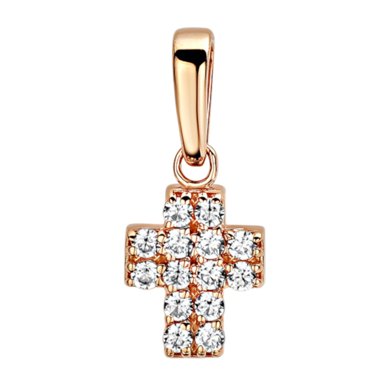 Подвеска "Крест" из красного золота 585 пробы с фианитами 01Р111123