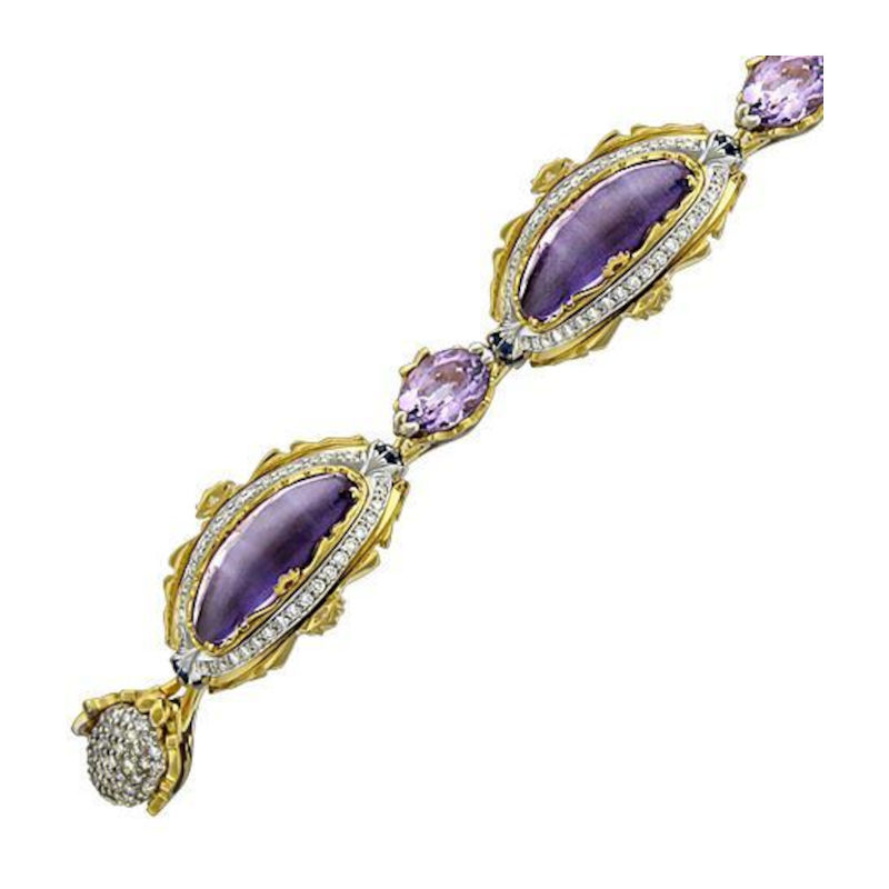 Браслет из комбинированного золота 750 пробы с сапфирами, аметистами, бриллиантами и эмалью 01Б681277Э-1