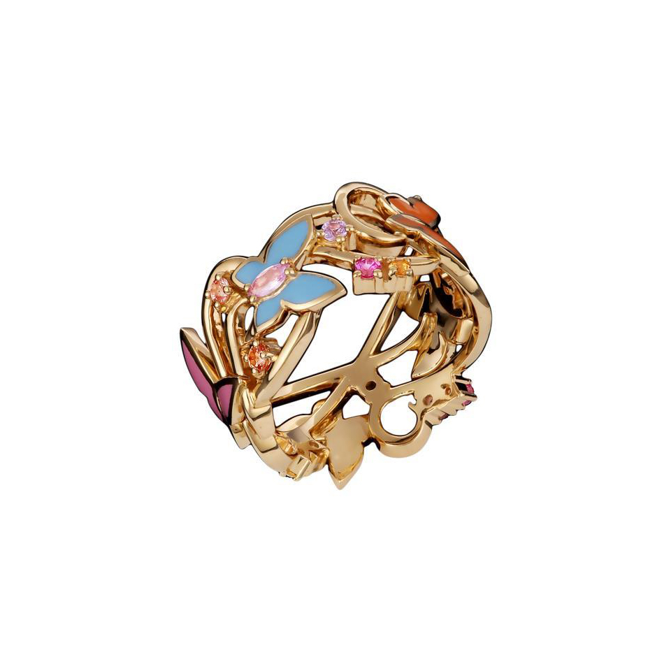 Кольцо из желтого золота 750 пробы с сапфирами и эмалью 01К546222Э-1