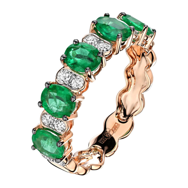 Кольцо из красного золота 585 пробы с изумрудами и бриллиантами 01К6113042-3