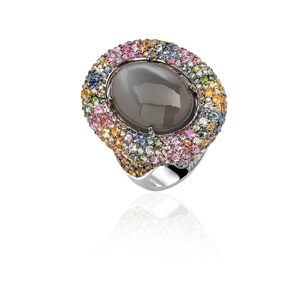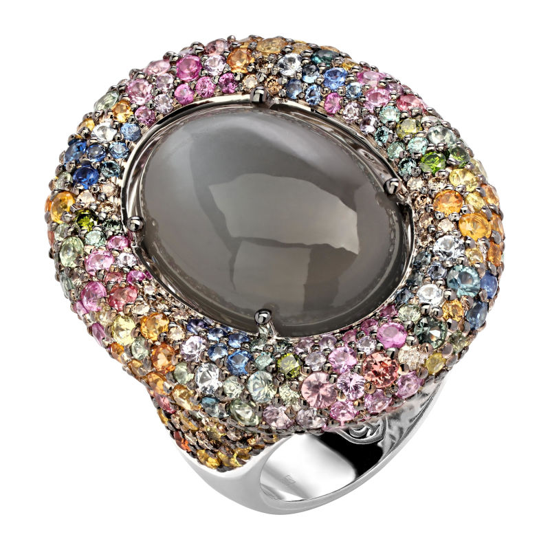 Кольцо из белого золота 585 пробы с лунным камнем, сапфирами и бриллиантами 01К6212900-11