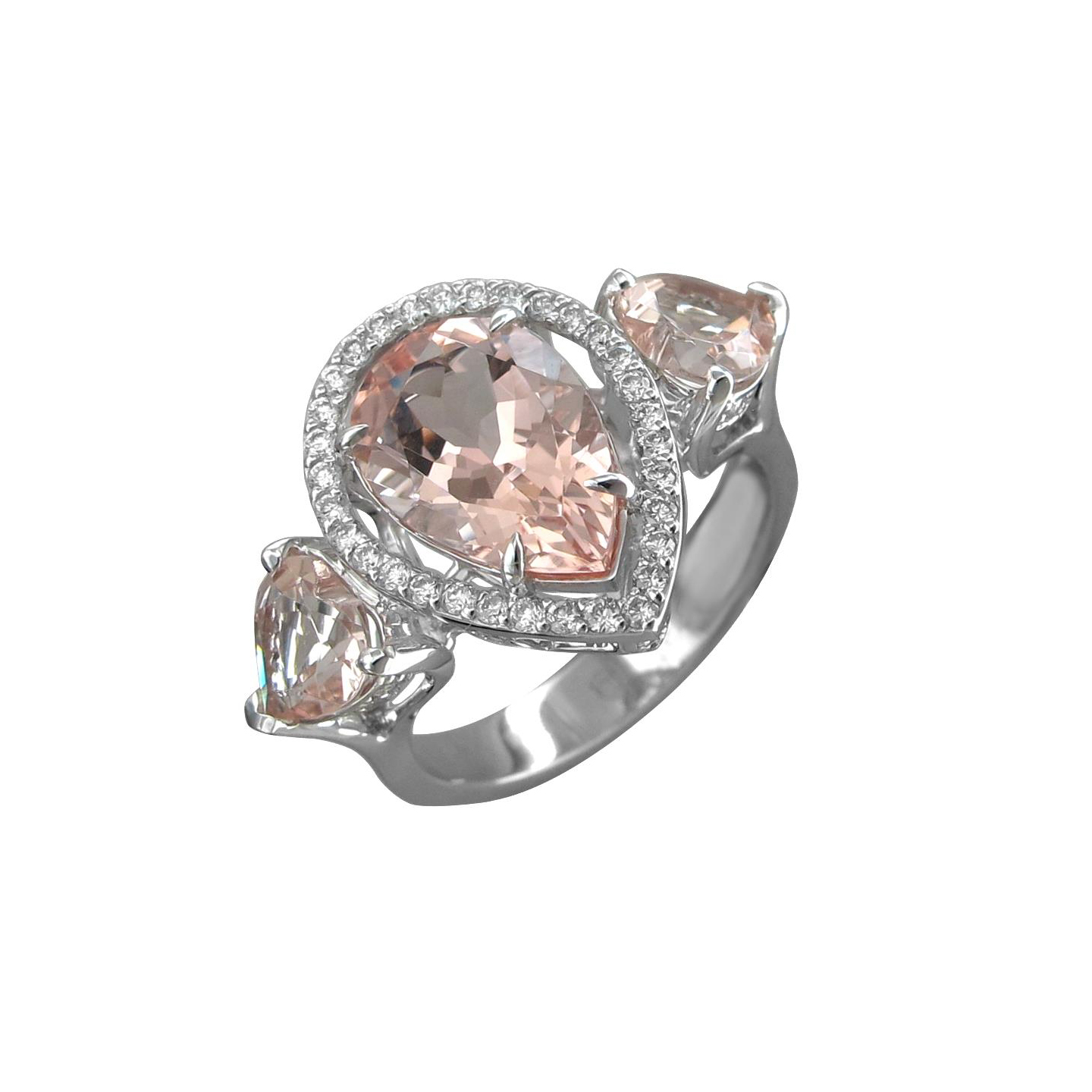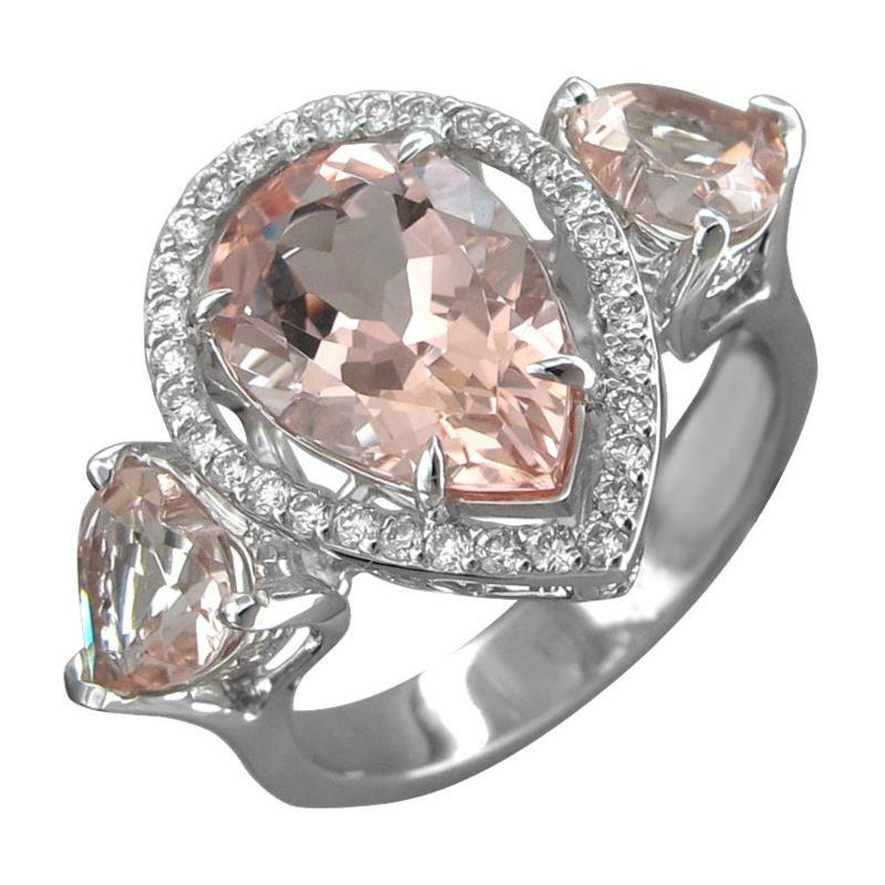 Кольцо из белого золота 585 пробы с морганитами и бриллиантами 01К6214075-4