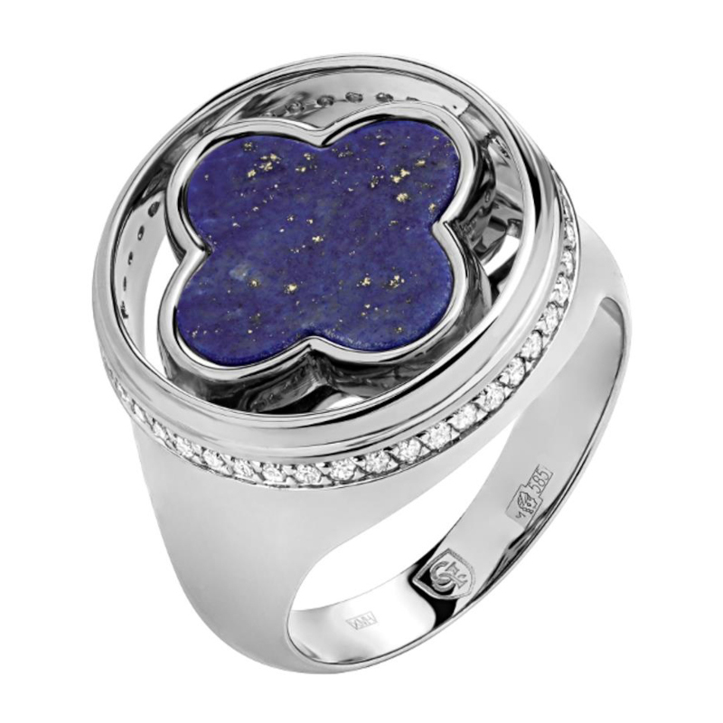 Кольцо из белого золота 585 пробы с лазуритом и бриллиантами 01К62134405-2