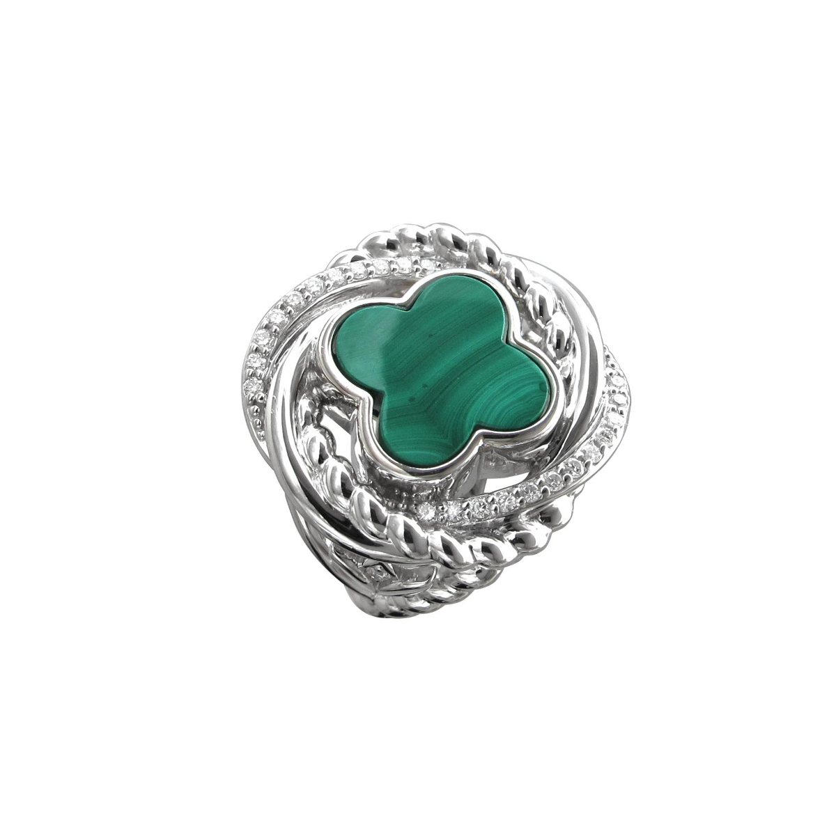 Кольцо из белого золота 585 пробы с малахитом и бриллиантами 01К6213308-1
