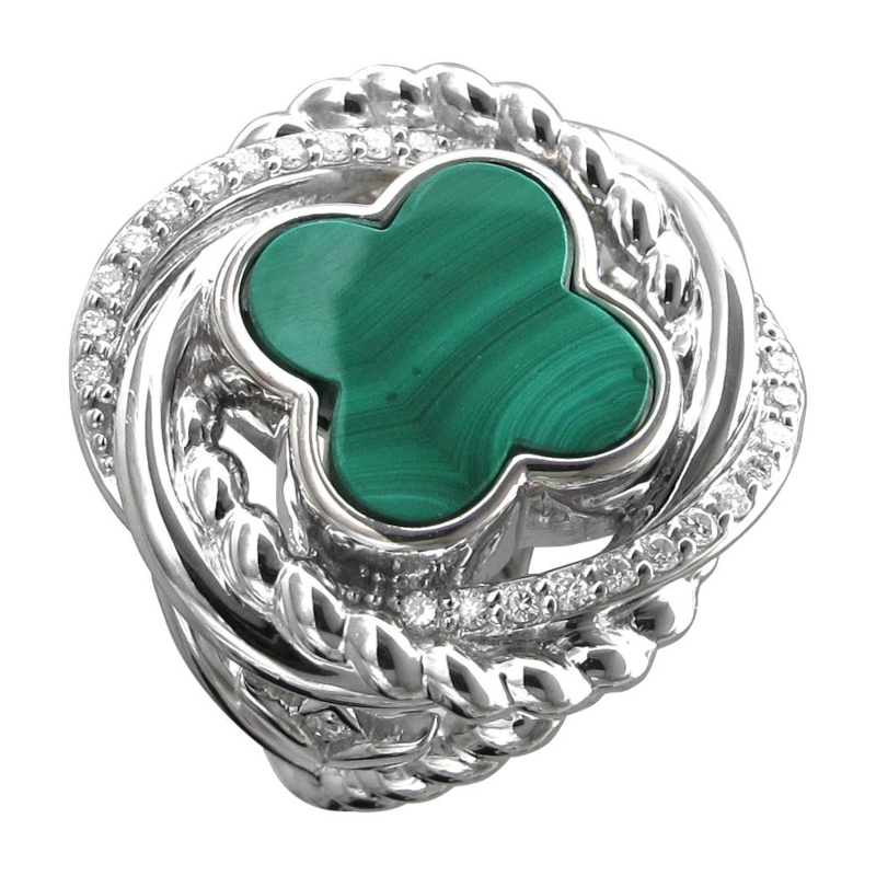 Кольцо из белого золота 585 пробы с малахитом и бриллиантами 01К62134408-1