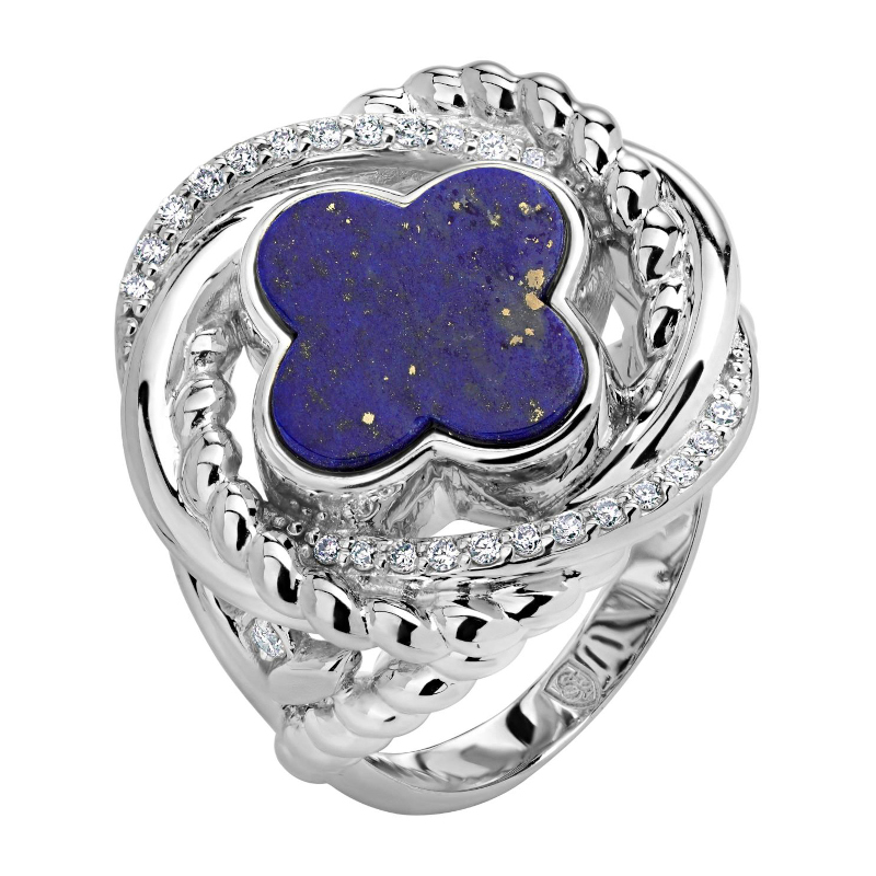Кольцо из белого золота 585 пробы с лазуритом и бриллиантами 01К6213308-2