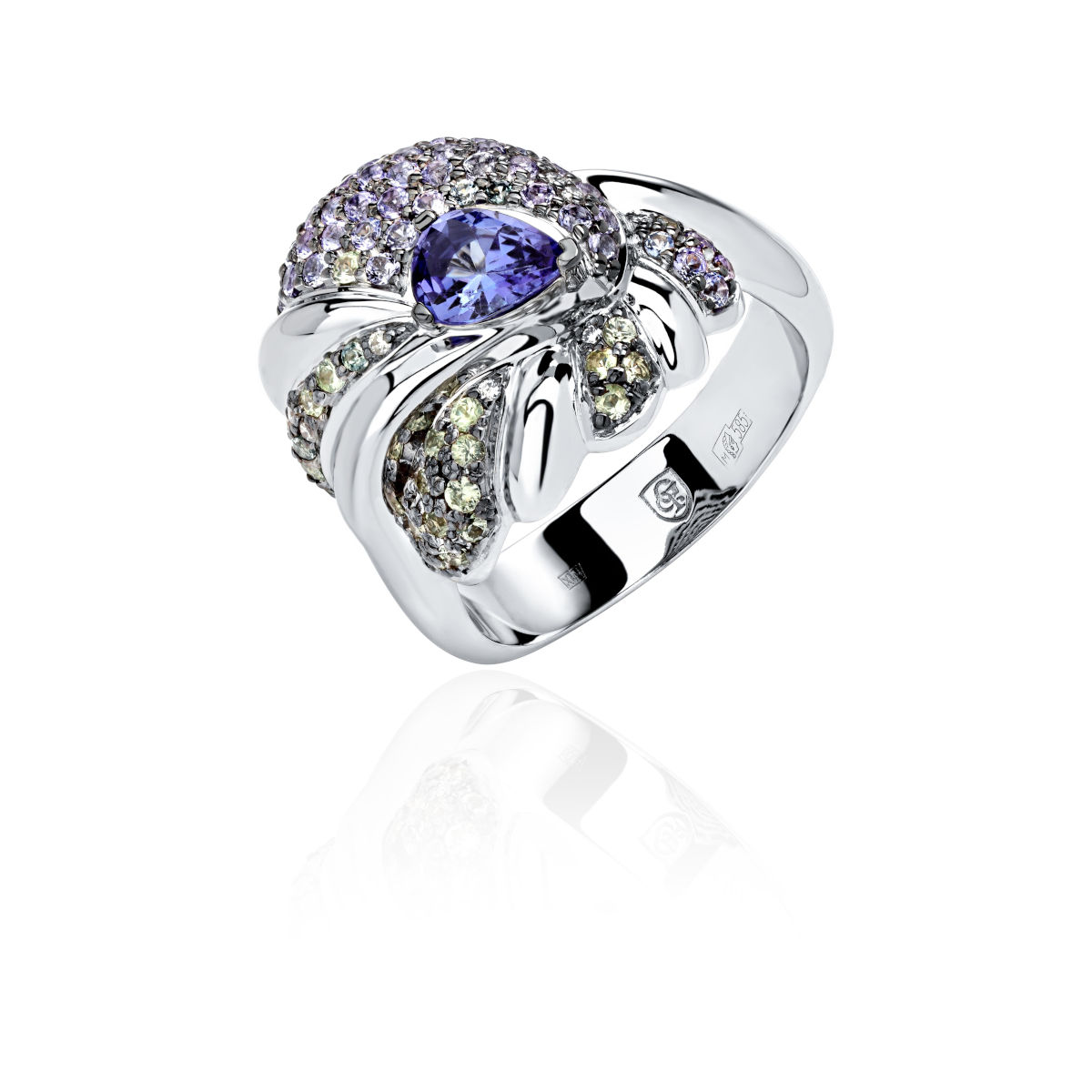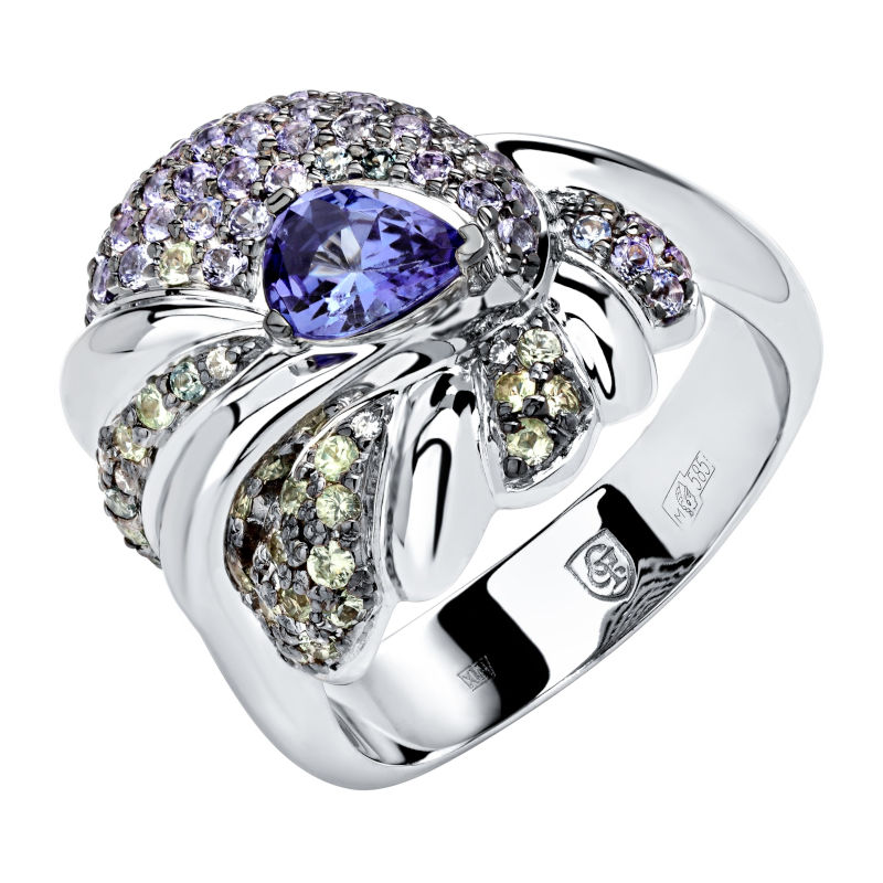 Кольцо из белого золота 585 пробы с танзанитами, сапфирами и бриллиантами 01К6214474-1