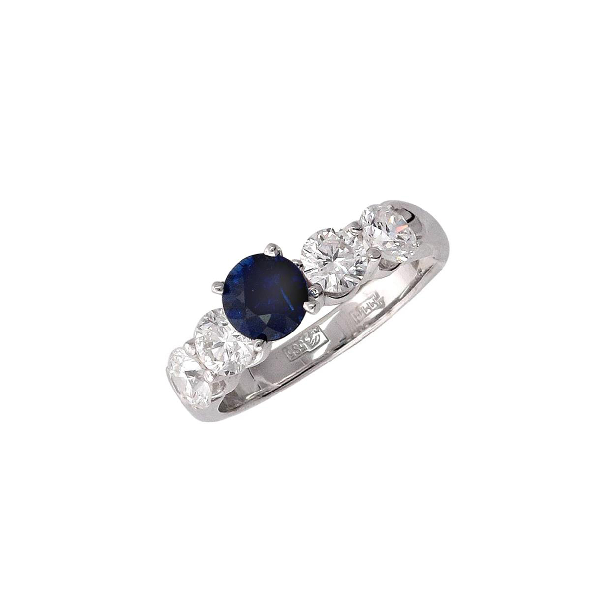 Кольцо из белого золота 585 пробы с сапфиром и бриллиантами 01К626012-1