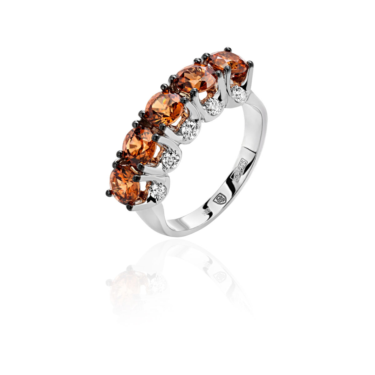 Кольцо из белого золота 585 пробы с гиацинтами и бриллиантами 01К6271105-14
