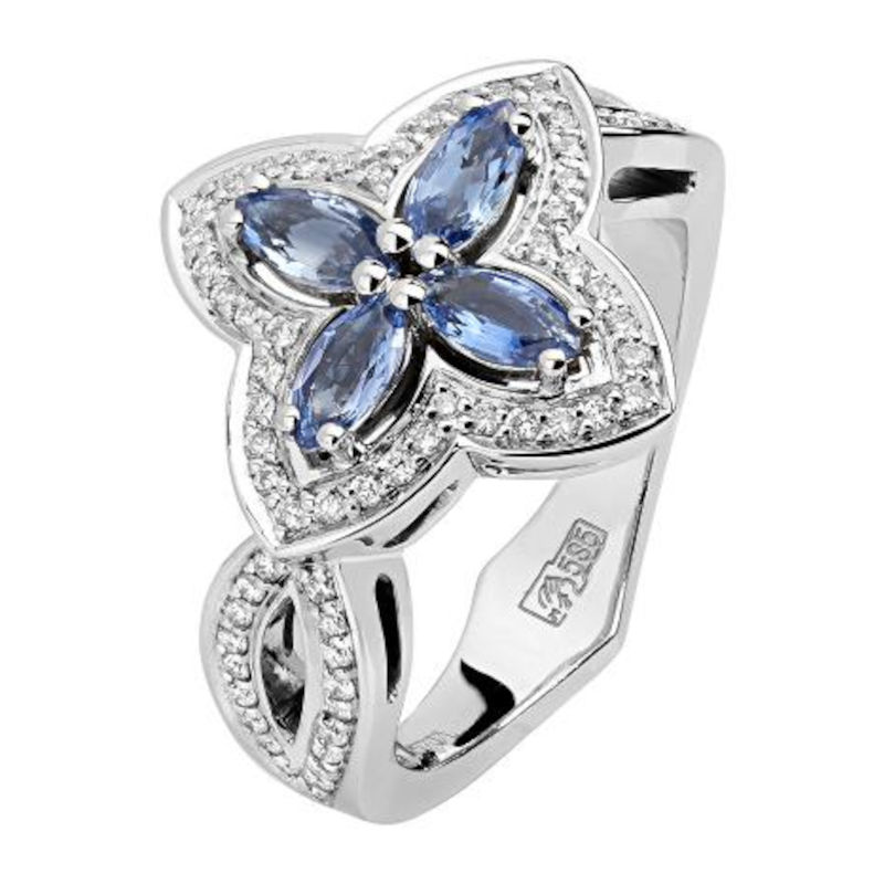 Кольцо из белого золота 585 пробы с сапфирами и бриллиантами 01К6291058-1