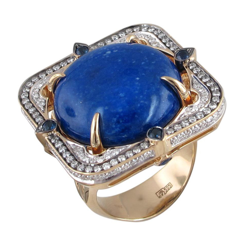 Кольцо из желтого золота 585 пробы с лазуритом, сапфирами и бриллиантами 01К63101622-2