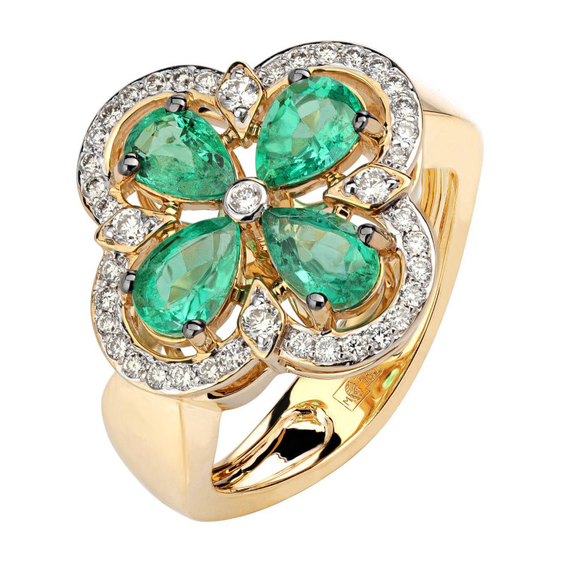 Кольцо из желтого золота 585 пробы с изумрудами и бриллиантами 01К6310919-2