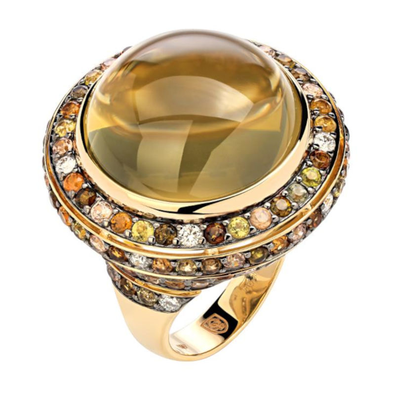 Кольцо из желтого золота 585 пробы с кварцем, шпинелью, туралинами и бриллиантами 01К6313282-3