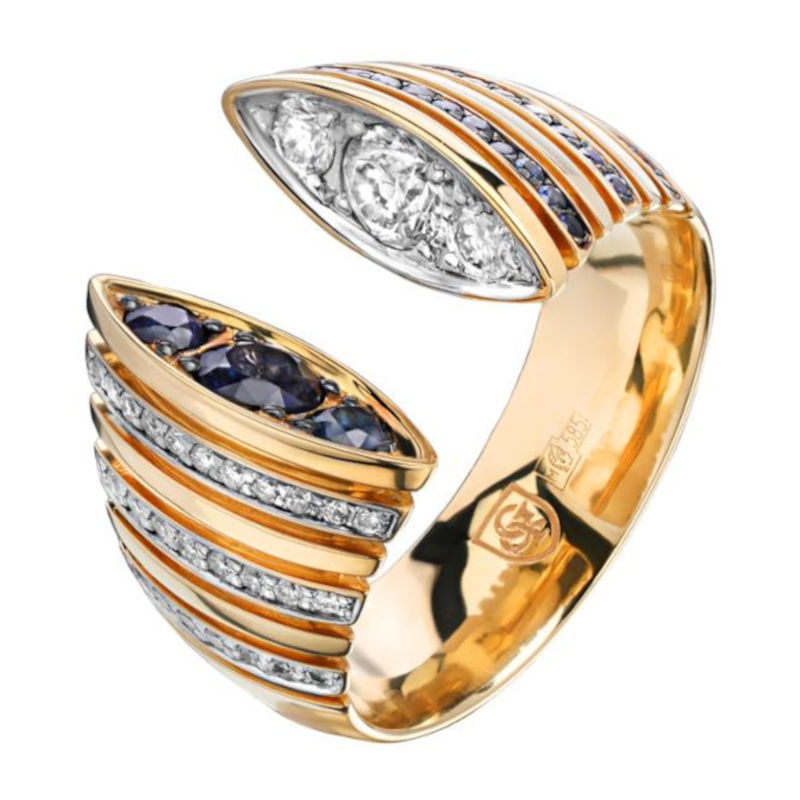 Кольцо из желтого золота 585 пробы с сапфирами и бриллиантами 01К6312199-3