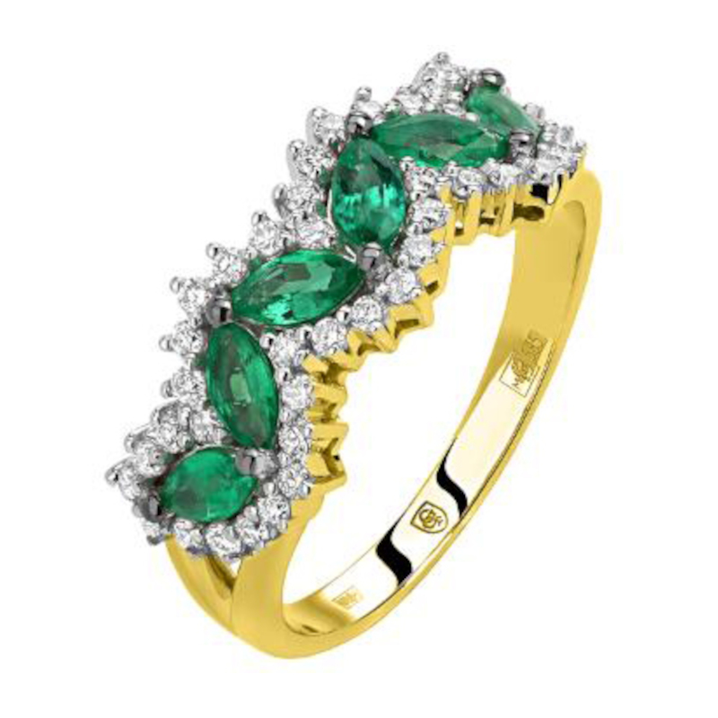 Кольцо из желтого золота 585 пробы с изумрудами и бриллиантами 01К6314317-3