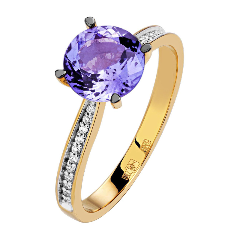 Кольцо из желтого золота 750 пробы с танзанитом и бриллиантами 01К6412106-2