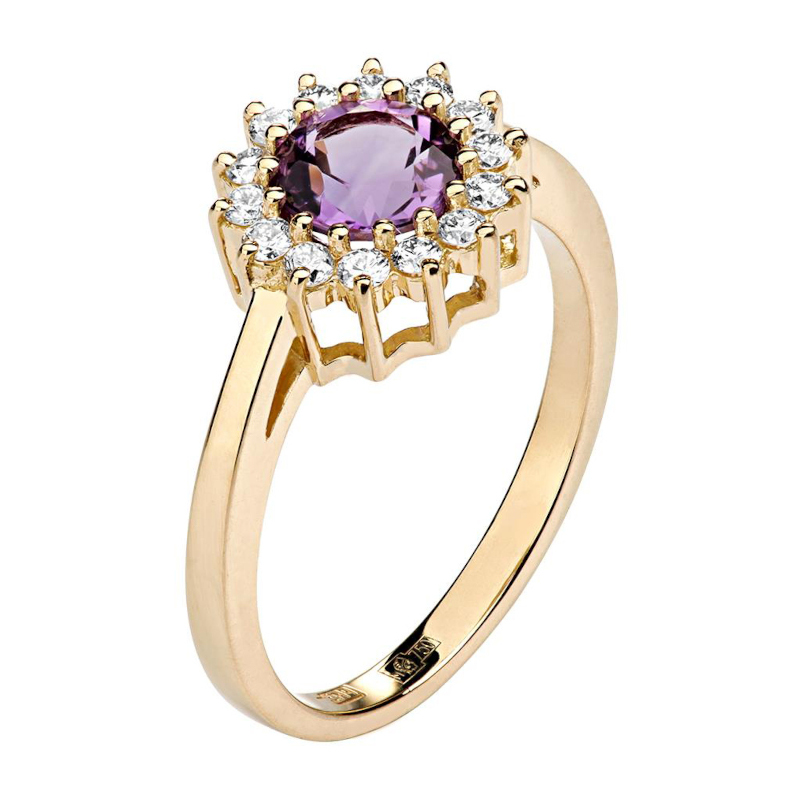 Кольцо из желтого золота 750 пробы с аметистом и бриллиантами 01К643167-1