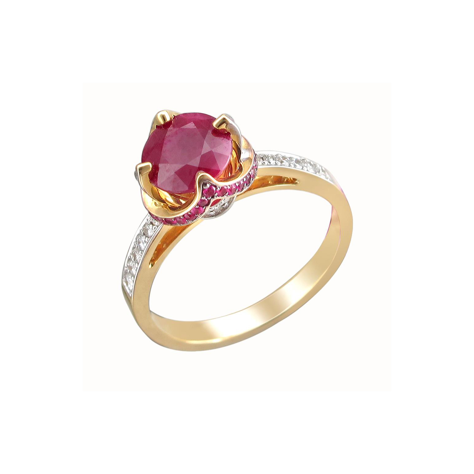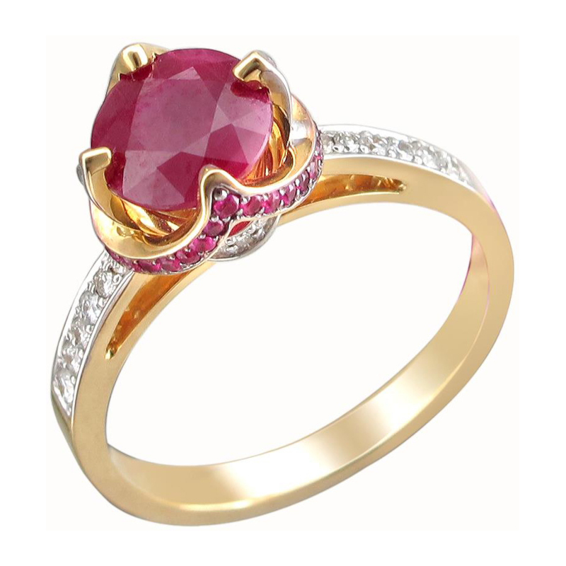 Кольцо из желтого золота 750 пробы с рубинами и бриллиантами 01К6461086-1