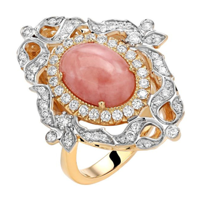 Кольцо из желтого золота 750 пробы с опалом и бриллиантами 01К6471268-1