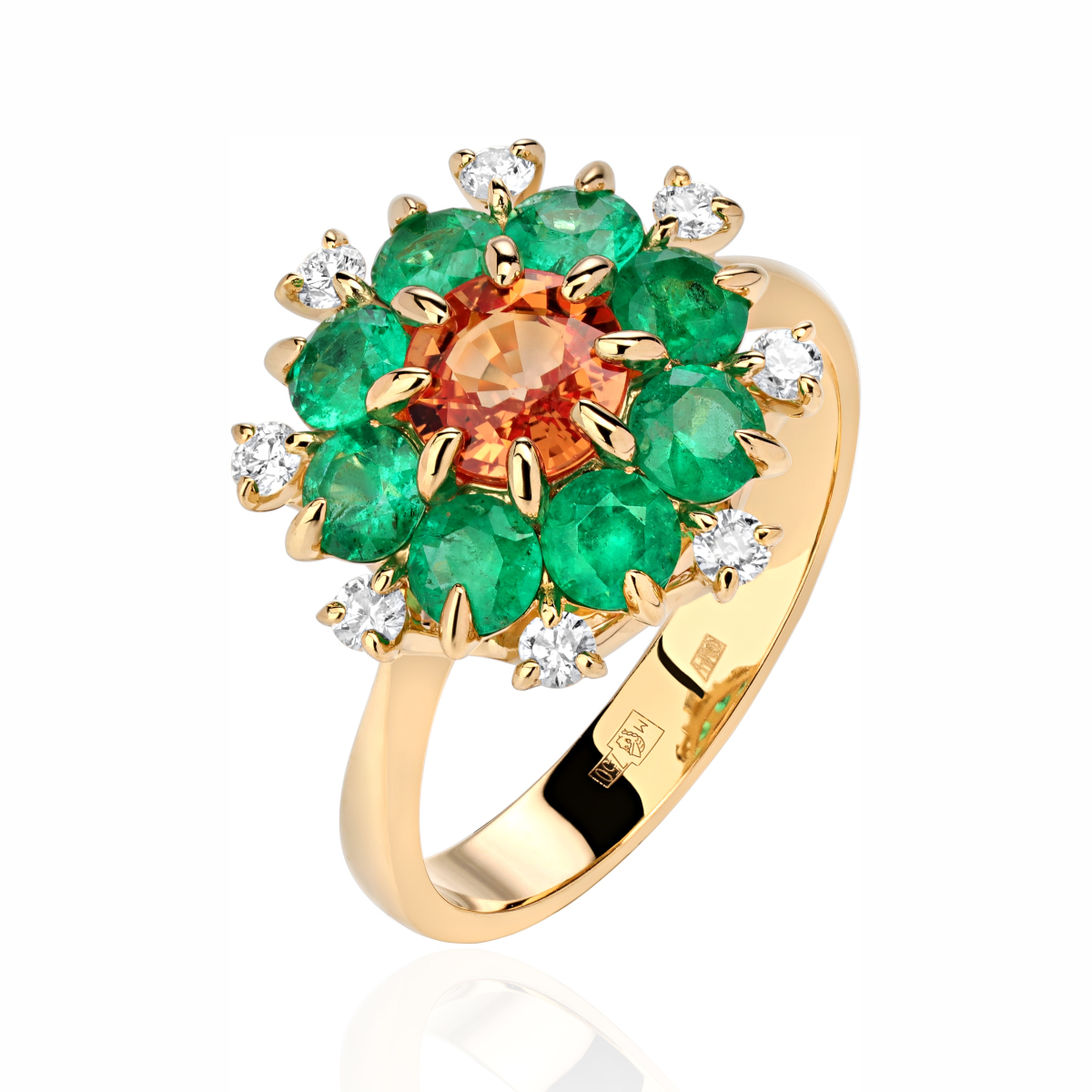 Кольцо из желтого золота 750 пробы с сапфиром, изумрудами и бриллиантами 01К647803-3
