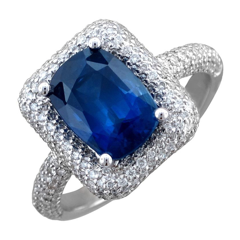 Кольцо из белого золота 750 пробы с сапфиром и бриллиантами 01К674297-2