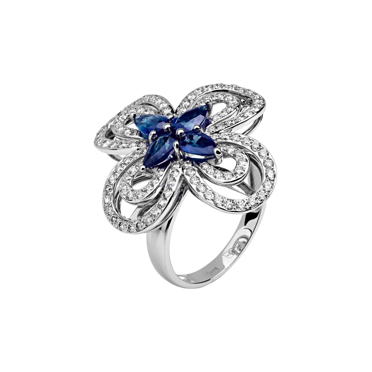 Кольцо из белого золота 750 пробы с сапфирами и бриллиантами 01К6741059-1