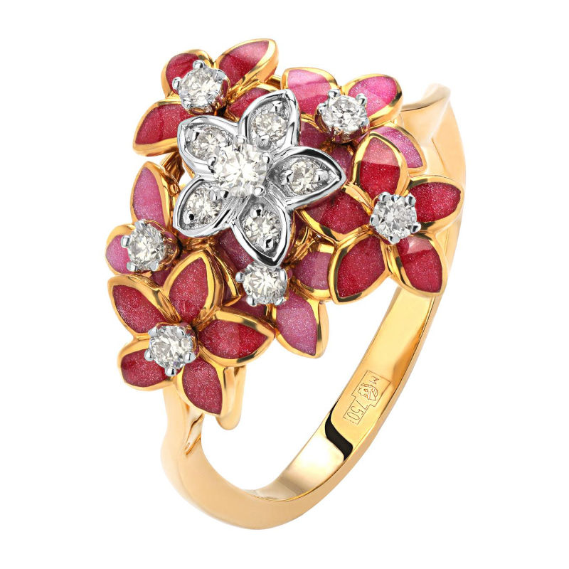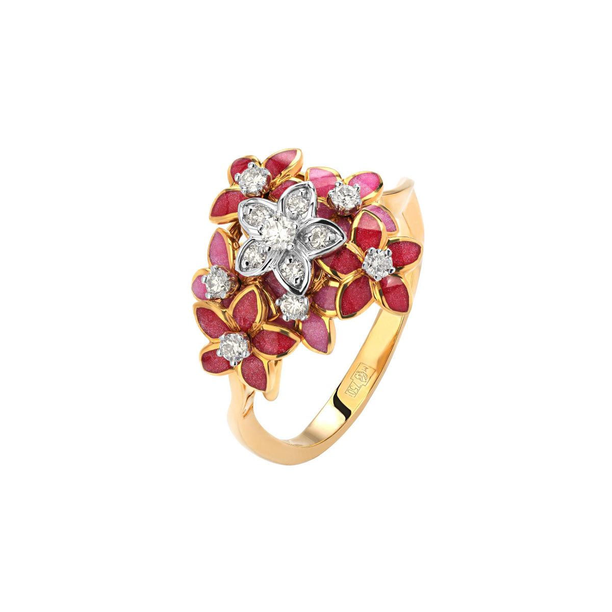 Кольцо из комбинированного золота 750 пробы с бриллиантами и эмалью 01К685723ЭL