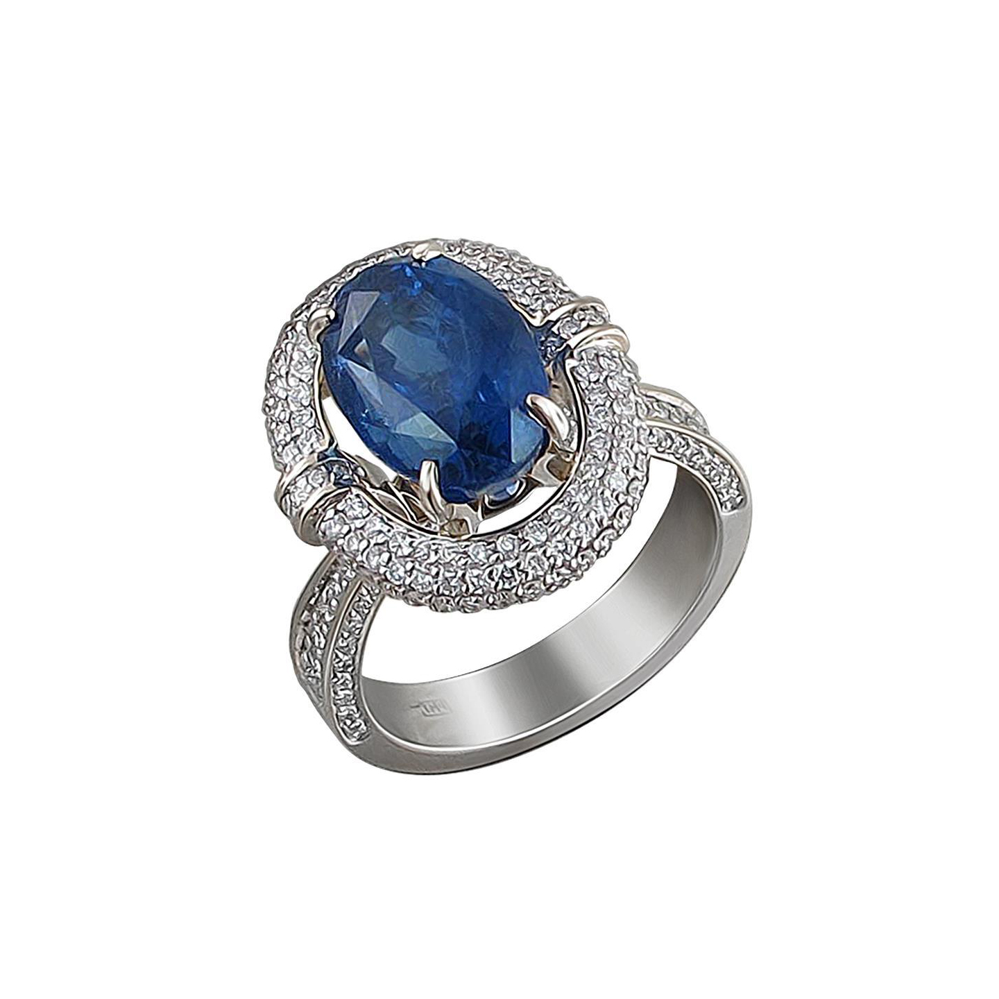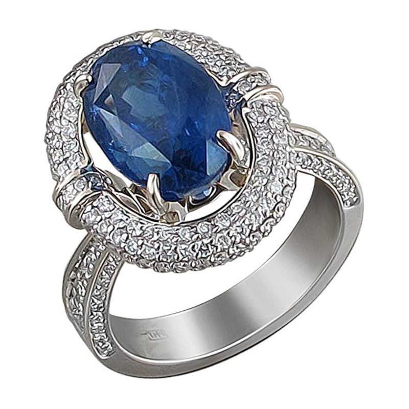 Кольцо из комбинированного золота 750 пробы с сапфиром и бриллиантами 01К688603-1