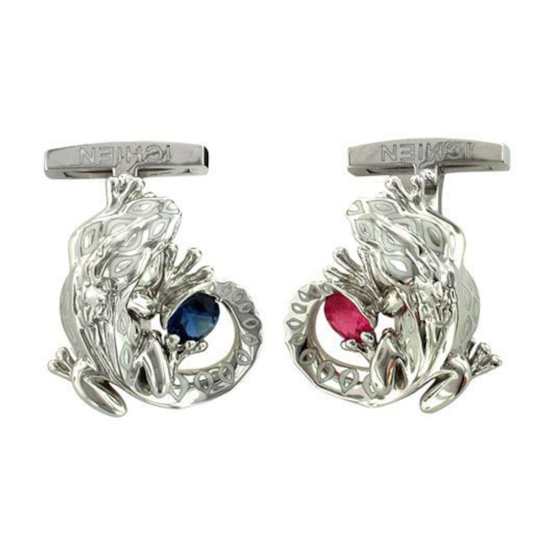 Запонки из белого золота 750 пробы с сапфиром, рубином и эмалью 01Н570152Э-1