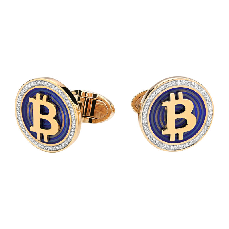 Запонки из желтого золота 585 пробы с эмалью и бриллиантами 01Н630391Э