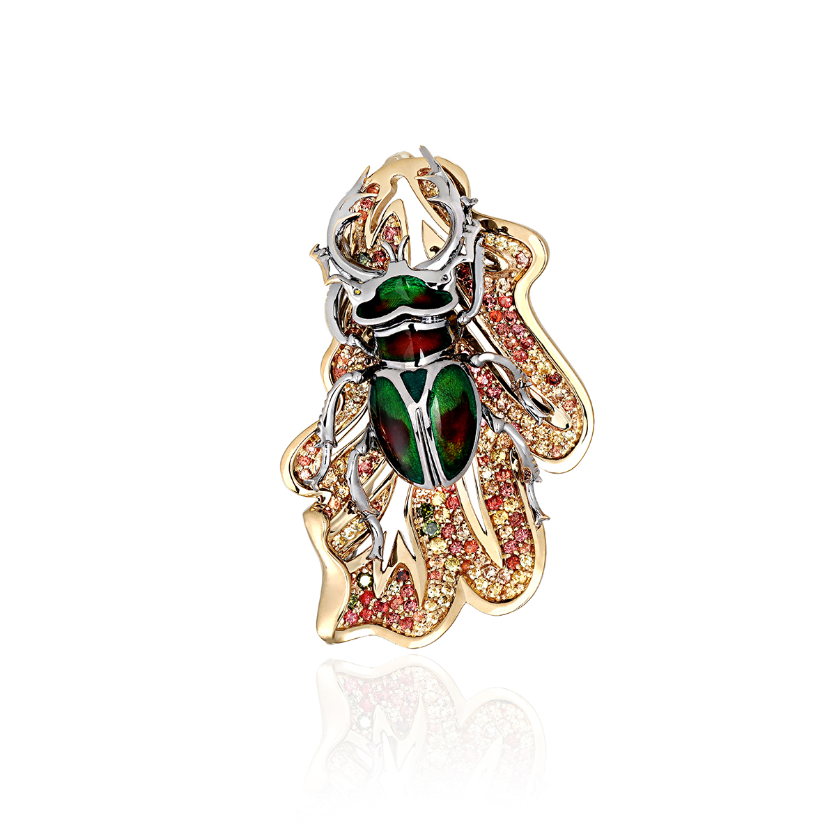 Подвеска из желтого золота 750 пробы с сапфирами, гранатами, бриллиантами, гиацинтами и эмалью 01П6412160Э-1