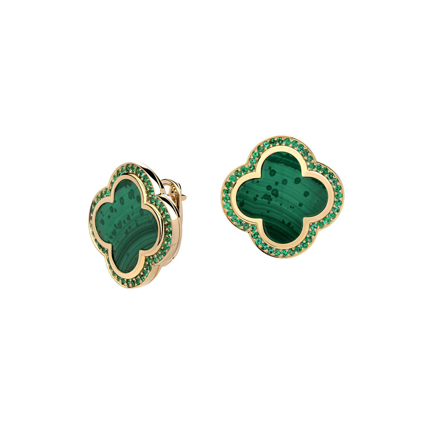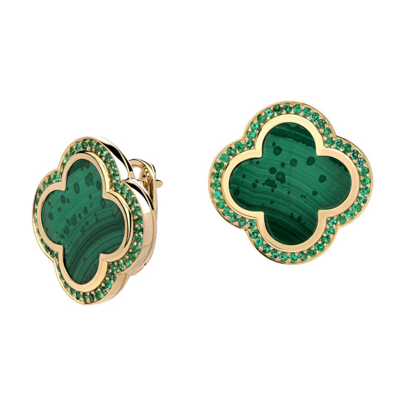 Серьги из желтого золота 585 пробы с малахитами и изумрудами 01С5314412-1