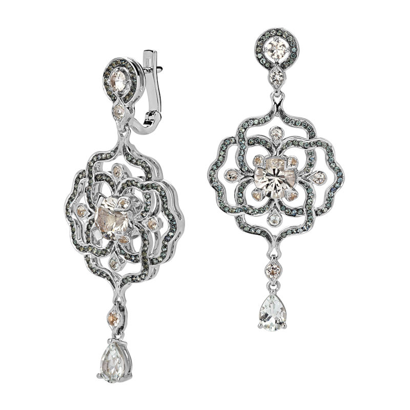 Серьги из белого золота 750 пробы с топазами и сапфирами 01С5771097-1