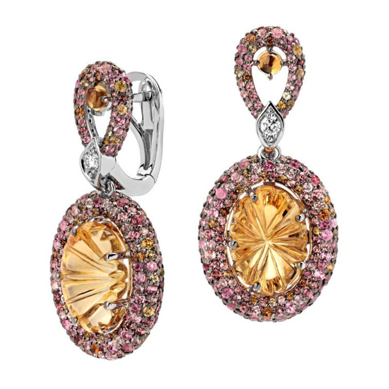 Серьги из белого золота 585 пробы с турмалинами, цитринами и бриллиантами 01С6212163-10