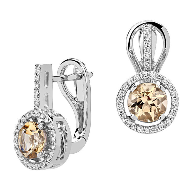 Серьги из белого золота 585 пробы с гелиодорами и бриллиантами 01С6213537-1