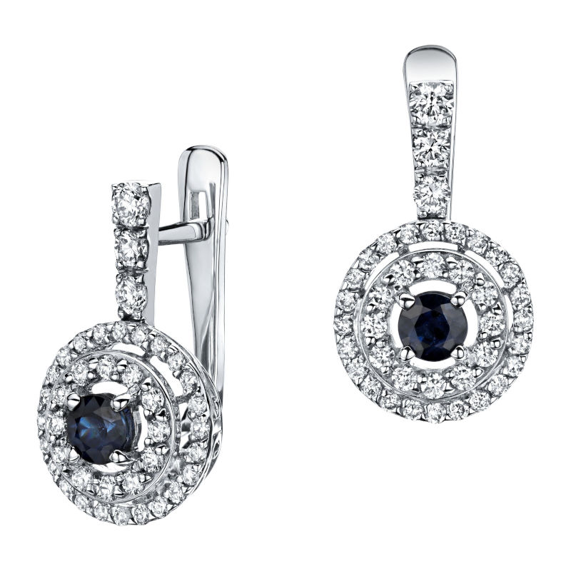 Серьги из белого золота 585 пробы с сапфирами и бриллиантами 01С625361-1