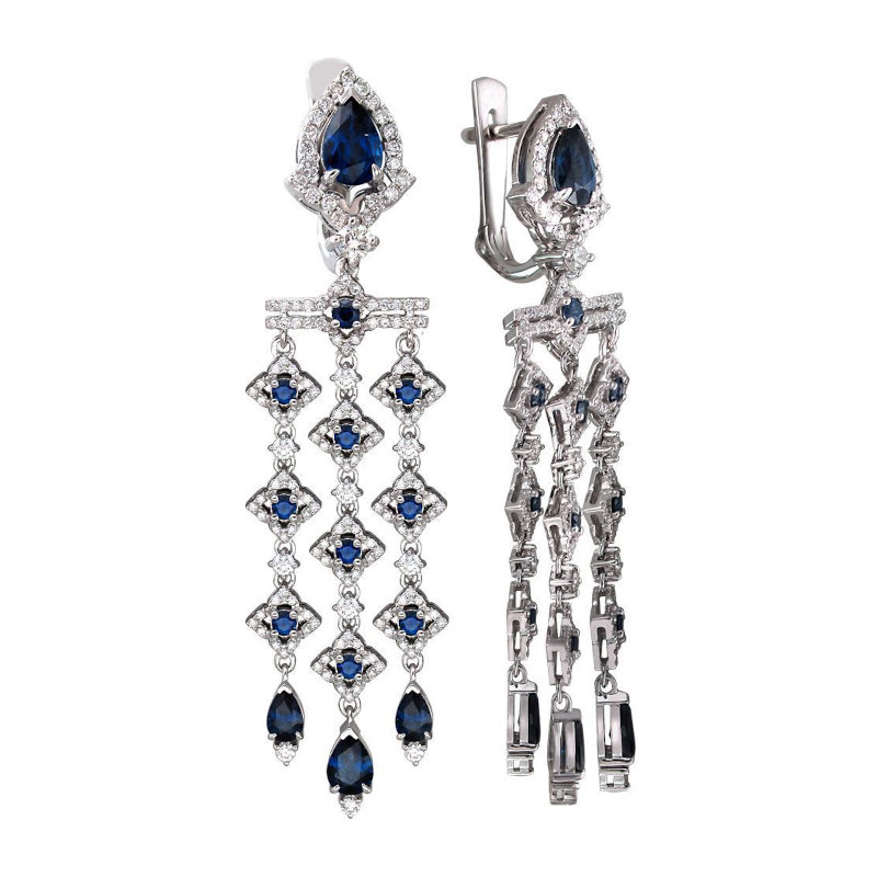 Серьги из белого золота 585 пробы с сапфирами и бриллиантами 01С627142-1